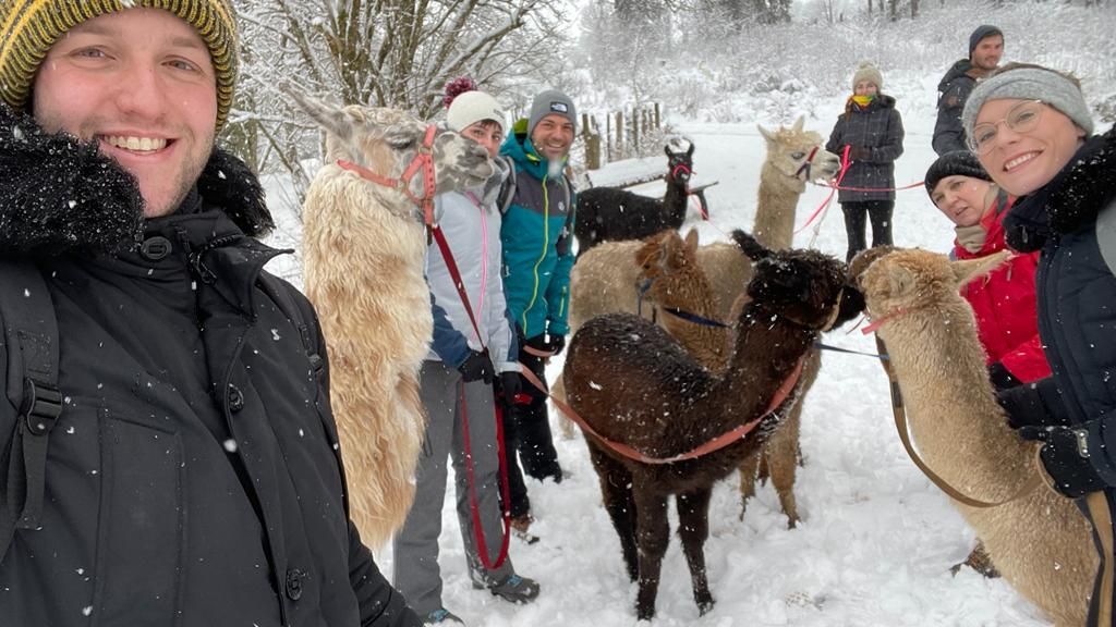 Es ist wichtig, dass die Tiere genauso viel Freude an den Wanderungen haben, wie wir. Daher haben wir zwei Wandergruppen, die sich abwechseln. So bleibt für jedes Tier ganz viel Zeit für die wichtigen Dinge im Lama- und Alpakaleben: fressen, wiederkäuen, spielen und schlafen.