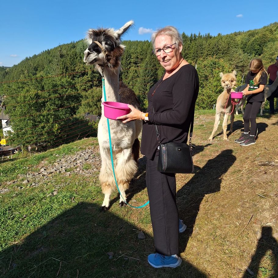 Teddy ist das größte Sensibelchen unter den Lamas. So passiert es auch mal, dass er sich vor einem Schmetteling erschreckt. Als kleiner Bruder von Buddy läuft er bei den Wanderungen meistens an zweiter Stelle.