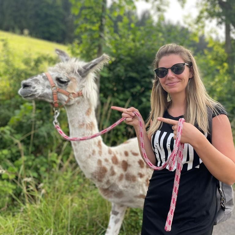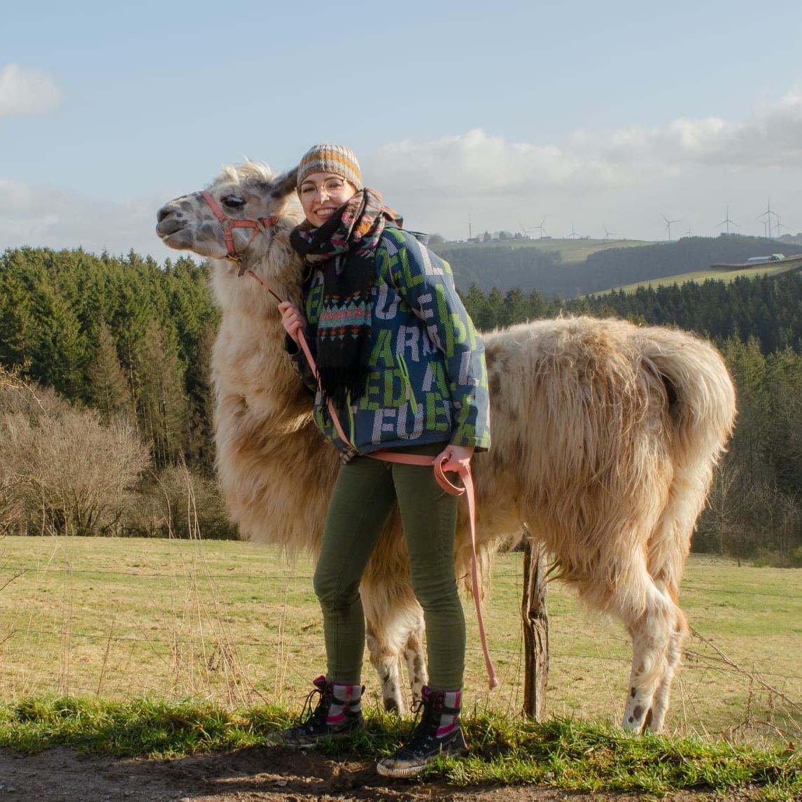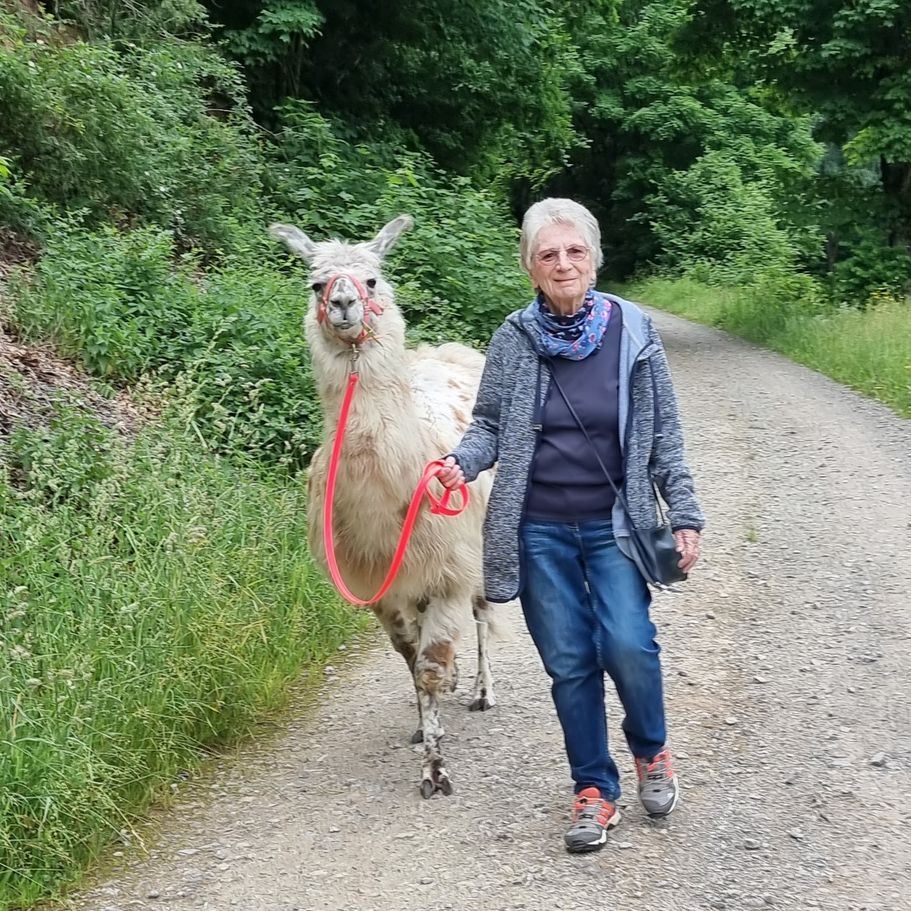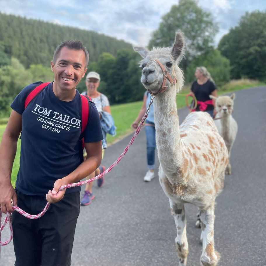 Oskar ist der Chef der Herde und das älteste Eifel Lama. Er hat immer alles im Blick und passt gut auf seine Herde auf. Bei den Wanderungen geht er meistens vor und beobachtet ganz genau, ob sich eine Gefahr nähert. Beim Laufen schaut er leicht nach links und nach rechts, dabei sieht es so aus, als würde er verträumt die Umgebung genießen. In Wirklichkeit checkt er genau ab, was hinter ihm passiert und ob alle Herdenmitglieder ihm folgen. Bleibt hinten jemand stehen, bleibt er auch stehen und wartet geduldig, bis alle wieder beisammen sind.